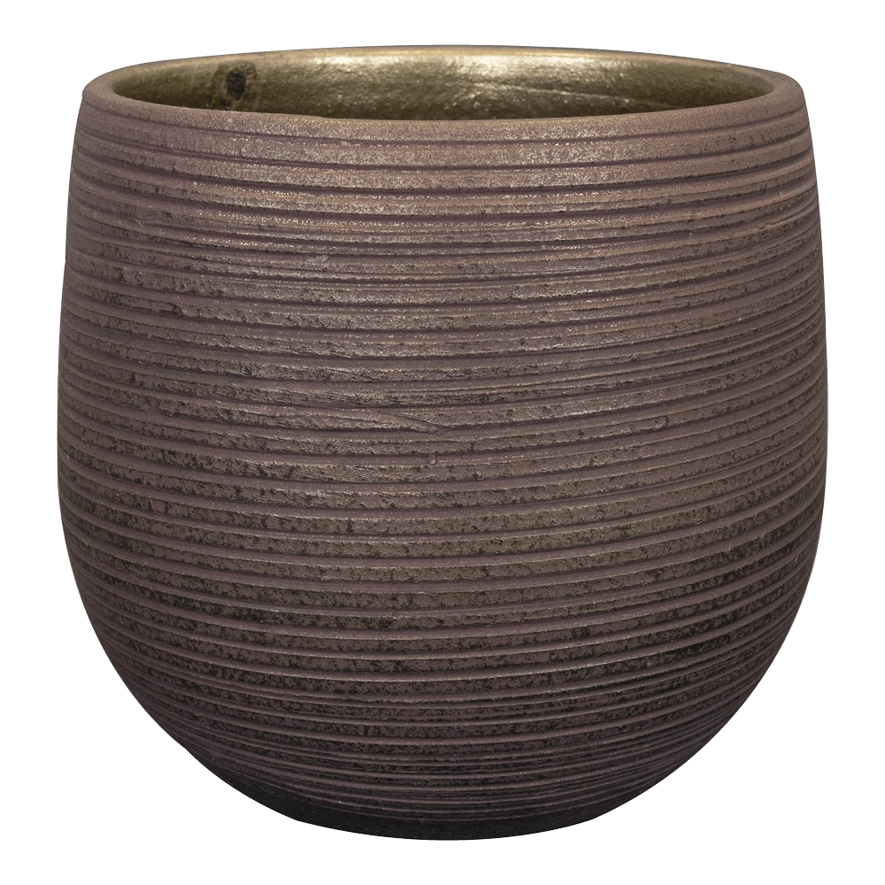 Kijk eens naar deze stijlvolle pot met mondaine uitstraling. Het vrijzinnige streeppatroon brengt kalmte met een knipoog naar sjiek. De binnenkant is goudkleurig. Pottenbakkers in Portugal maken deze serie van TS Collection nog traditioneel gemaakt. Dat gebeurt op draaiplateaus, met de handen. Vervolgens wordt de textuur aan de buitenkant met een speciale tool aangebracht. Daarna wordt de pot gebakken en vervolgens, ook handmatig, gespoten in de juiste kleur. Er is keuze uit frisse, flitsende kleuren volgens de laatste trends.