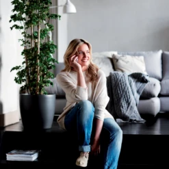Bloempot Elho Brussels Diamond Rond Hoog 32cm – Metallic Zwart